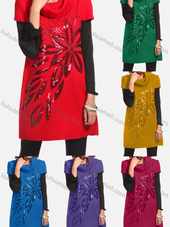 Wholesale Women's Casual Plain Turtleneck Beaded Sequin Knit Tunic 311#