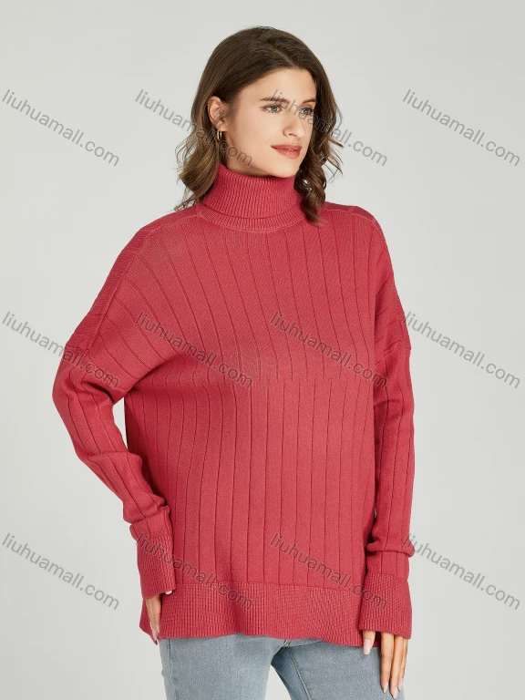 Wholesale Women's Casual Plain Turtleneck Side Slit Long Sleeve Ribbed Sweater HB1068#