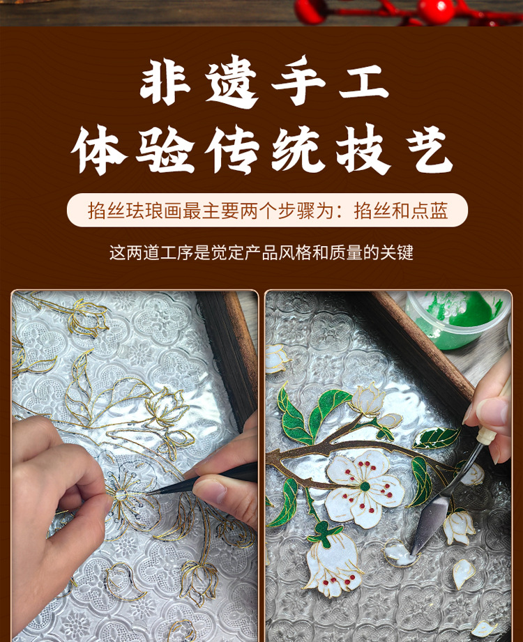 "Pear Blossom" Cloisonne Enamel Tea Tray – Material Pack (including full set of tools) JRT17057、"Butterfly Linger Orchid" Cloisonne Enamel Tea Tray – Material Pack (including full set of tools) JRT17777、"Jade Rabbit Shaking Osmanthus" Cloisonne Enamel Tea Tray – Material Pack (including full set of tools) JRT17779、"Carp Leaping Lotus Bloom" Cloisonne Enamel Tea Tray – Material Pack (including full set of tools) JRT17827、"Thousand Miles of Mountains and Rivers" Cloisonne Enamel Tea Tray – Material Pack (including full set of tools) JRT17828、"Peach Blossoms Flickering" Cloisonne Enamel Tea Tray – Material Pack (including full set of tools) JRT17826、"Water Lily Emerges" Cloisonne Enamel Tea Tray – Material Pack (including full set of tools)、"Iris Swaying in the Wind" Cloisonne Enamel Tea Tray – Material Pack (including full set of tools) JRT17778、"Lucky Calabash Fortune and Prosperity" Cloisonne Enamel Tea Tray – Material Pack (including full set of tools) JRT17781、"Persimmon Wishing Well" Cloisonne Enamel Tea Tray – Material Pack (including full set of tools)、"Pine Crane Facing the Waves" Cloisonne Enamel Tea Tray – Material Pack (including full set of tools) JRT17780、"Proud Plum Blossom and Cold Snow" Cloisonne Enamel Tea Tray – Material Pack (including full set of tools) JRT17058、"Silent Valley Blooming Orchids" Cloisonne Enamel Tea Tray – Material Pack (including full set of tools) JRT17056、"Thick Bamboo Forest Maintaining Forests" Cloisonne Enamel Tea Tray – Material Pack (including full set of tools) JRT17059、"Calm Heart Like Chrysanthemum" Cloisonne Enamel Tea Tray – Material Pack (including full set of tools)、Tea Tray Display Stand