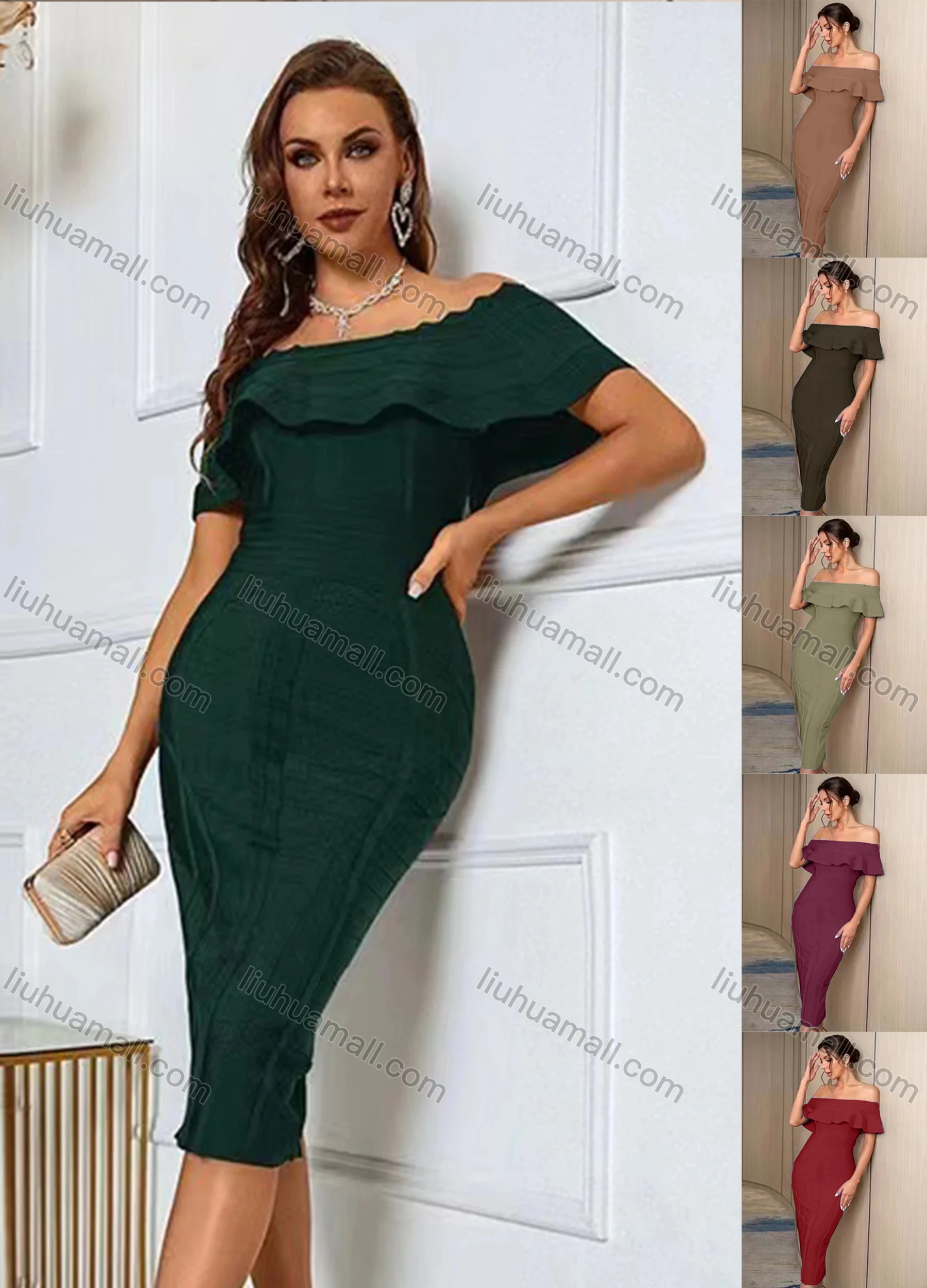 Wholesale Women's Elegant Plian Off Shoulder Tiered Midi Dress