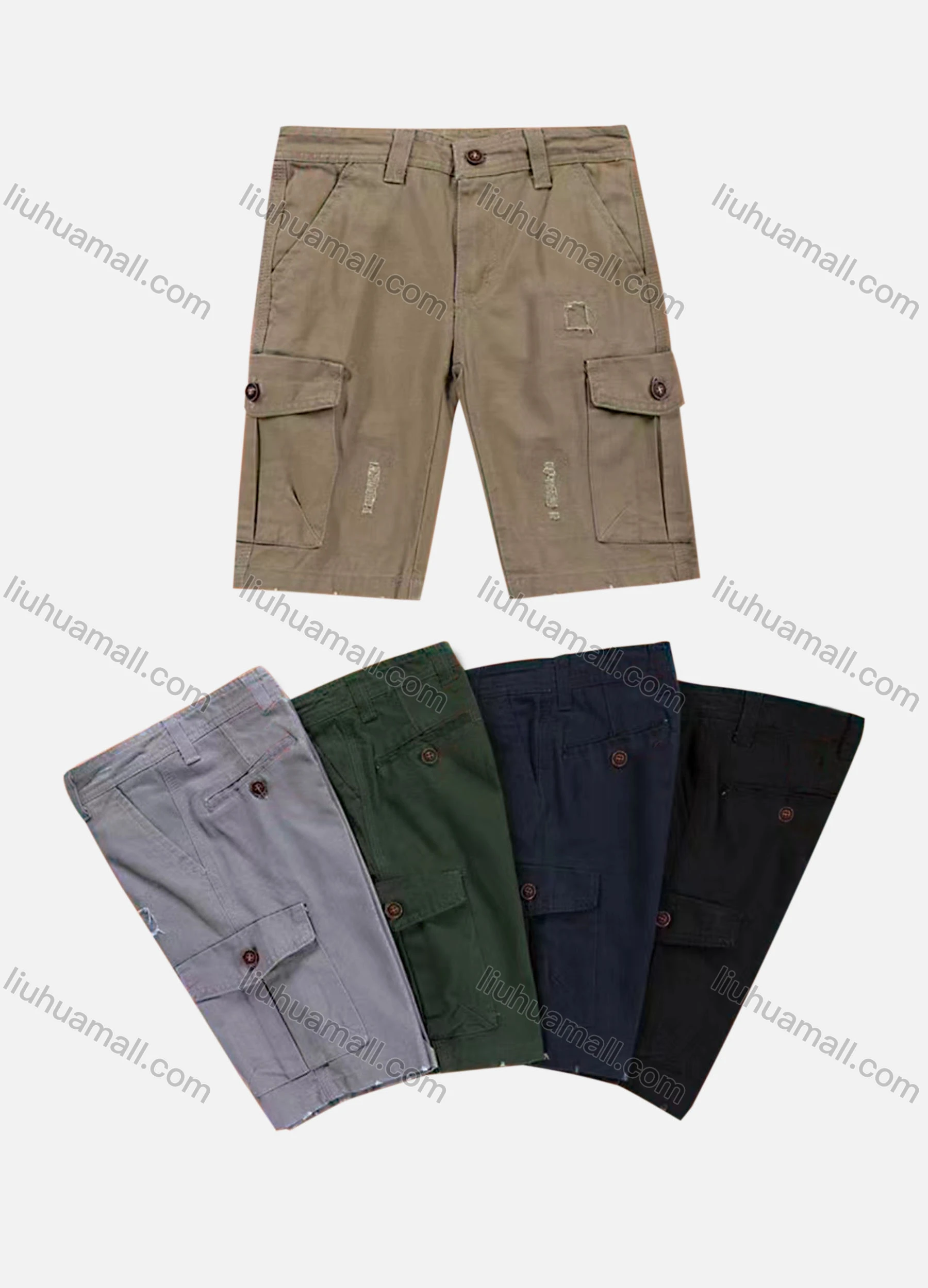 Wholesale Boys Casual Button Closure Flap Pockets Ripped Cargo Shorts 58502#