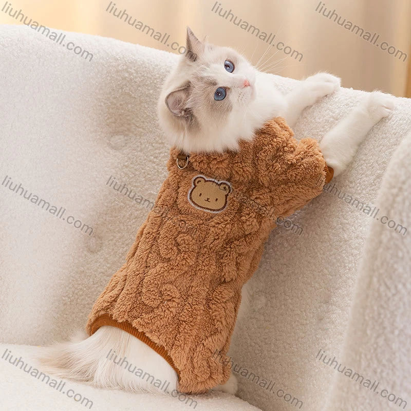 Wholesale Cat Cute Winter Cartoon Bear Four-legged Fleece Coat For Warm Pet Cat Coat
