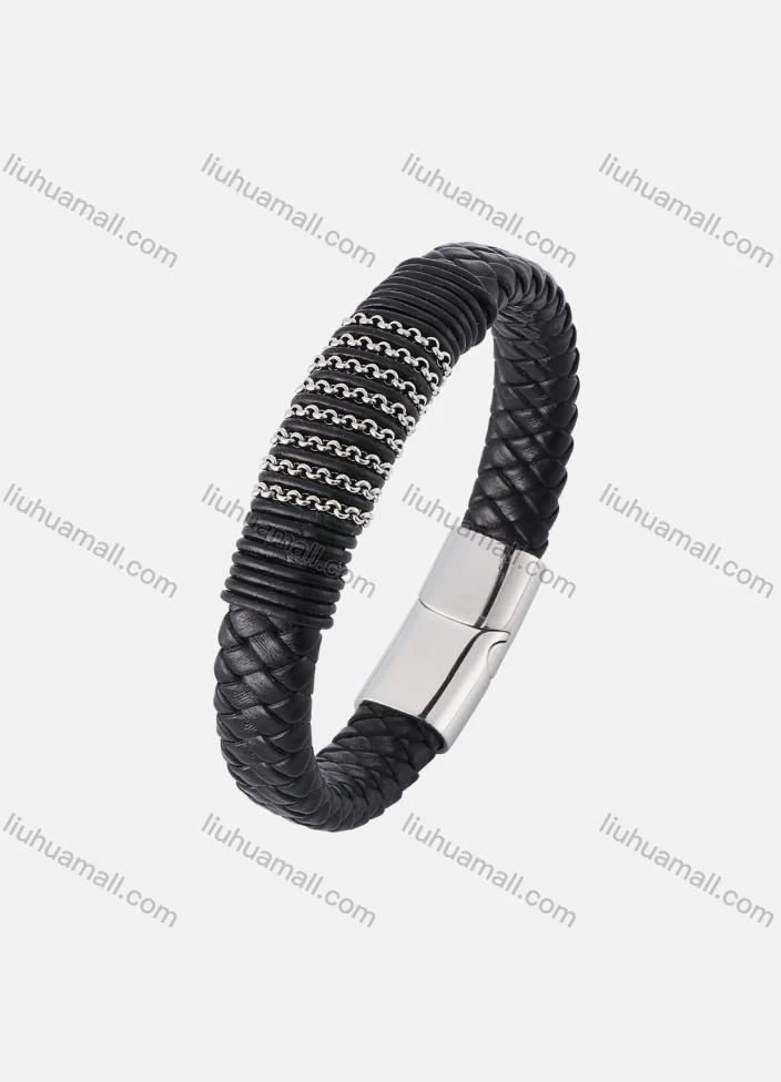 Wholesale Genuine Leather Stainless Steel Magnetic Buckle Bracelet SP0399#