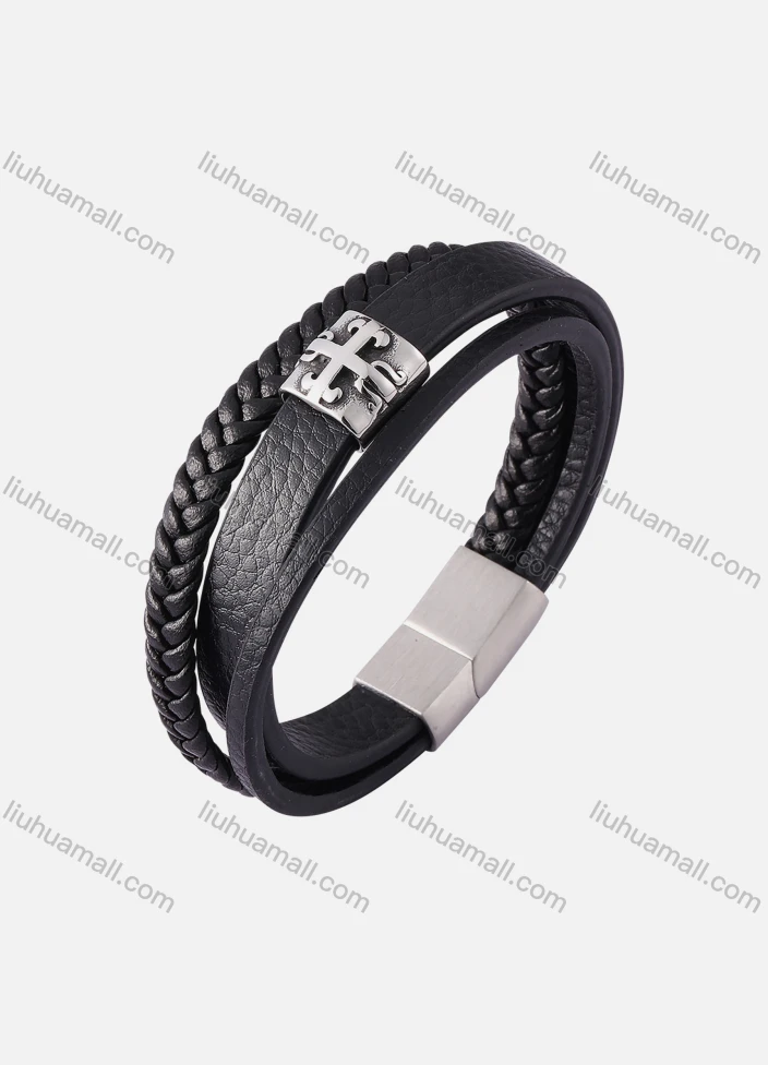 Wholesale Genuine Leather Stainless Steel Woven Bracelet SP0448#
