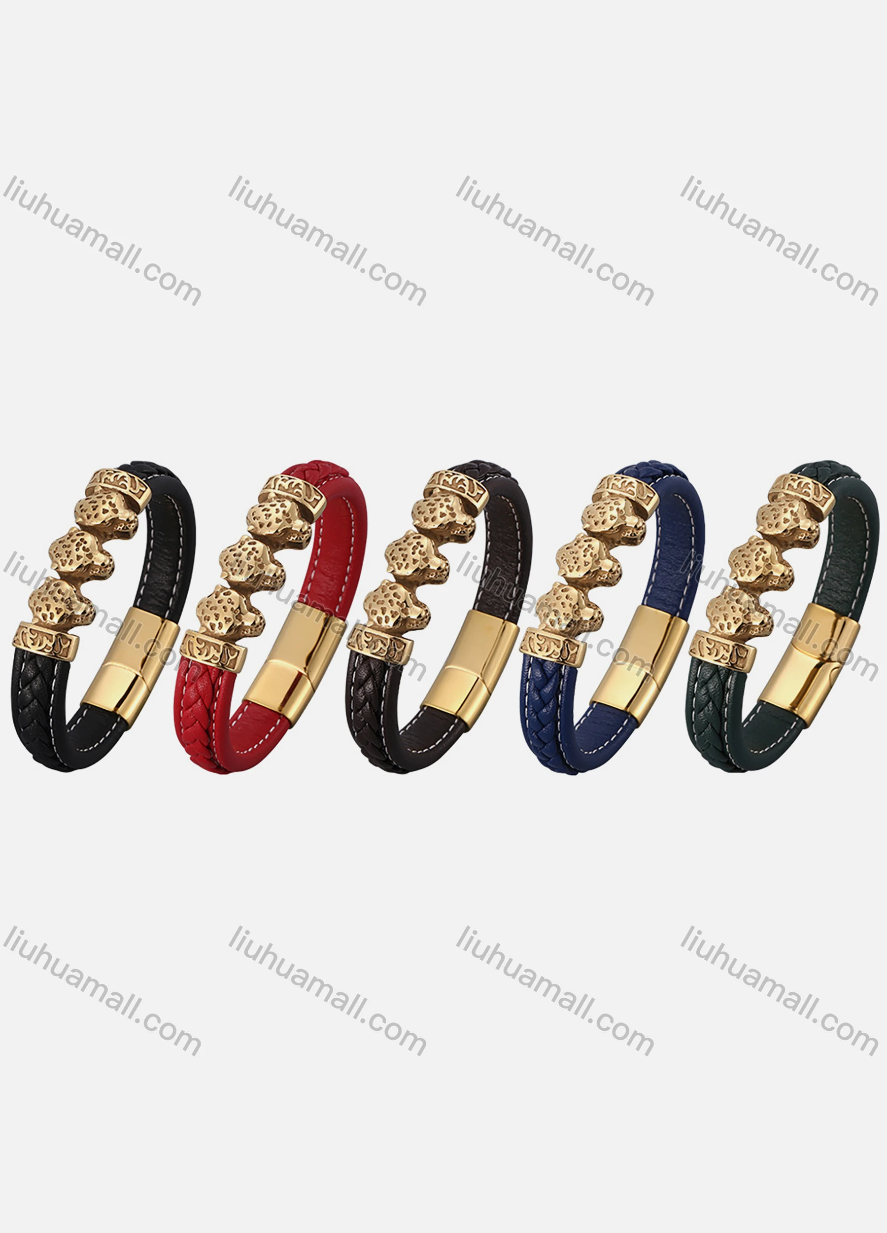 Wholesale Genuine Leather Stainless Steel Woven Magnetic Buckle Bracelet SP0841J#