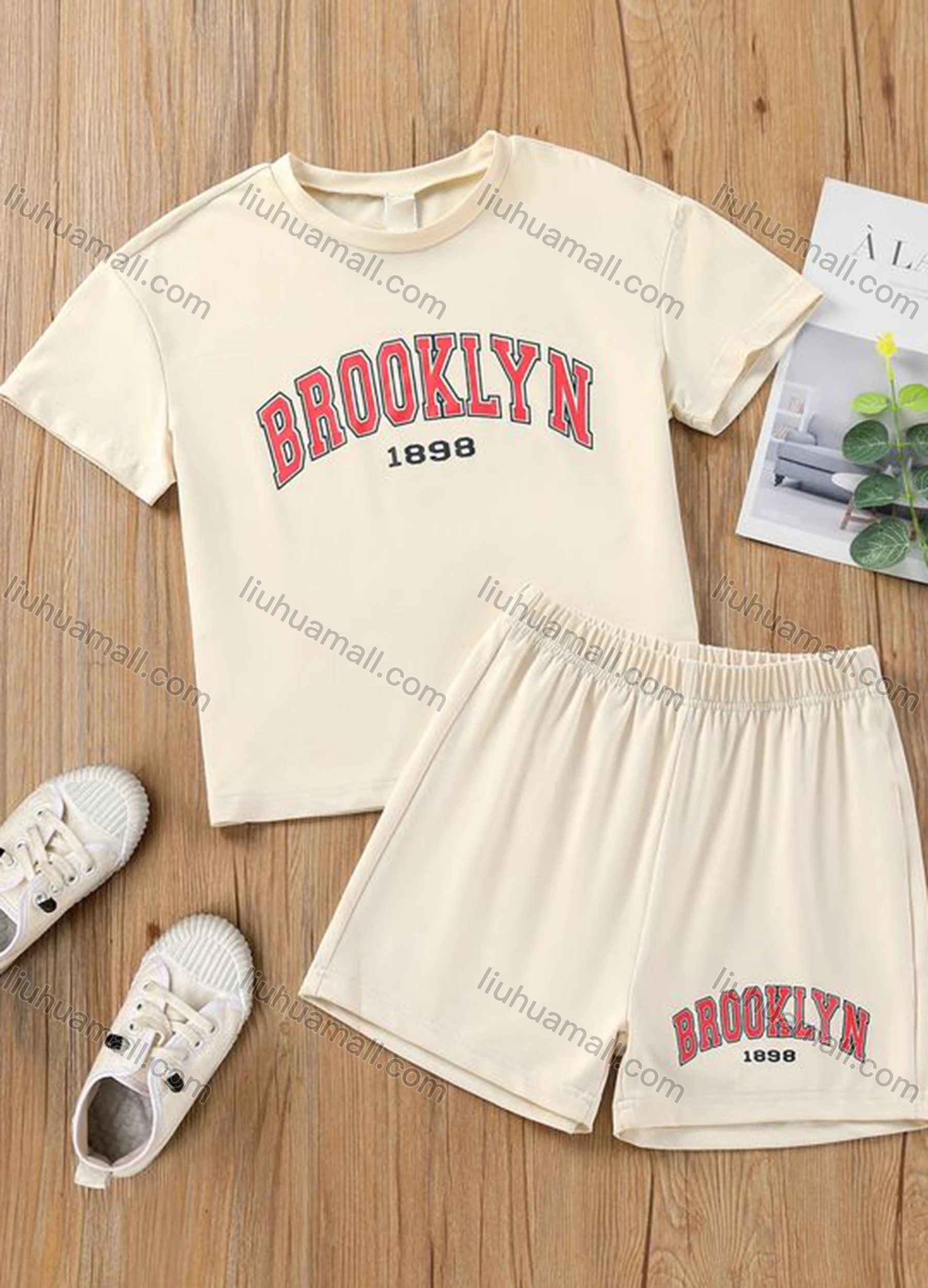 Wholesale Girls Casual Letter T-shirt & Elastic Waist Shorts Set