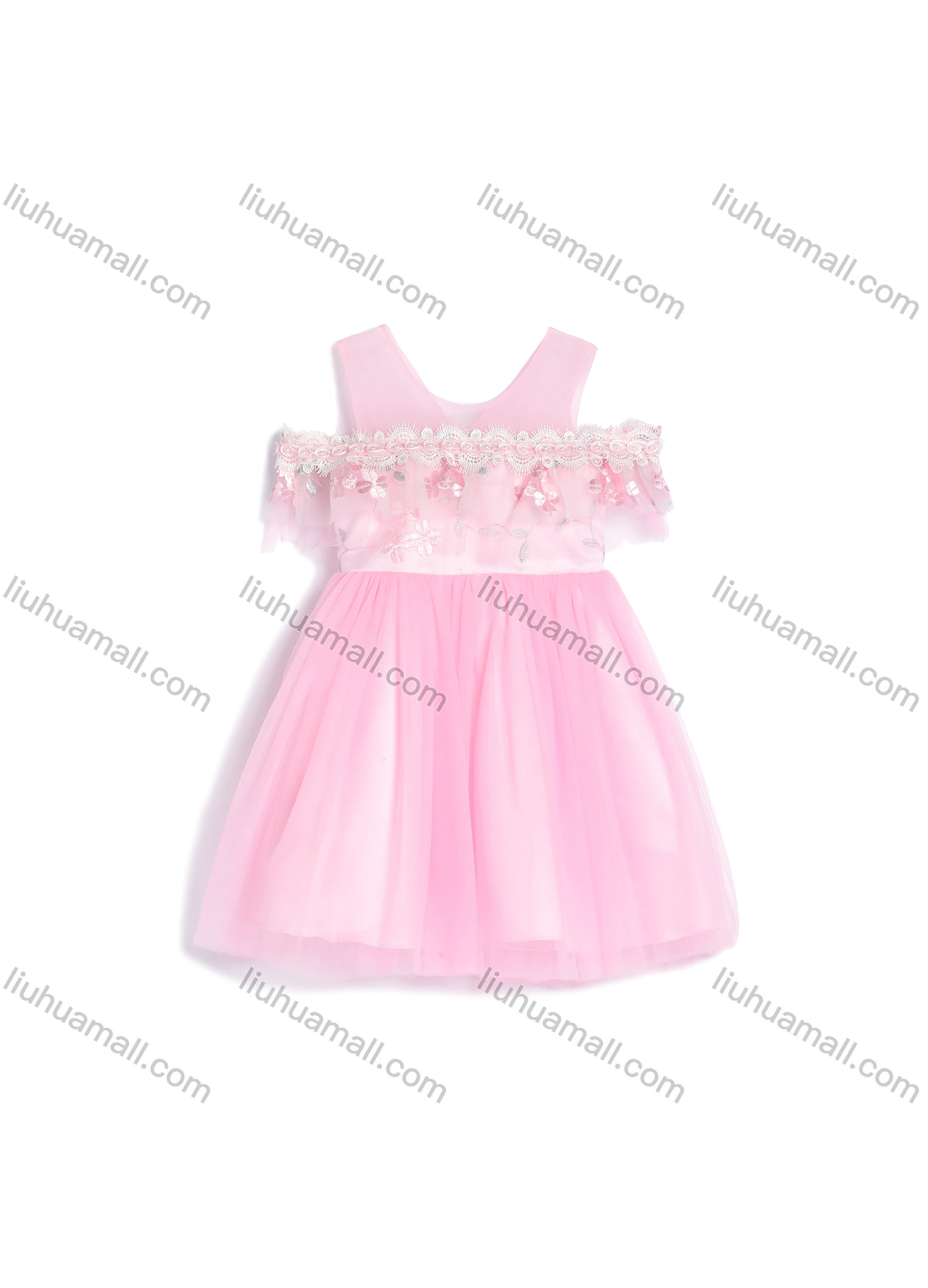 Wholesale Girls Cold Shoulder Embroidery Beads Eyelash Lace Sequin Flower Girl Dress