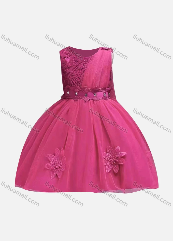 Wholesale Girls Lovely Crew Neck Sleeveless Appliques Pleated Flower Dress