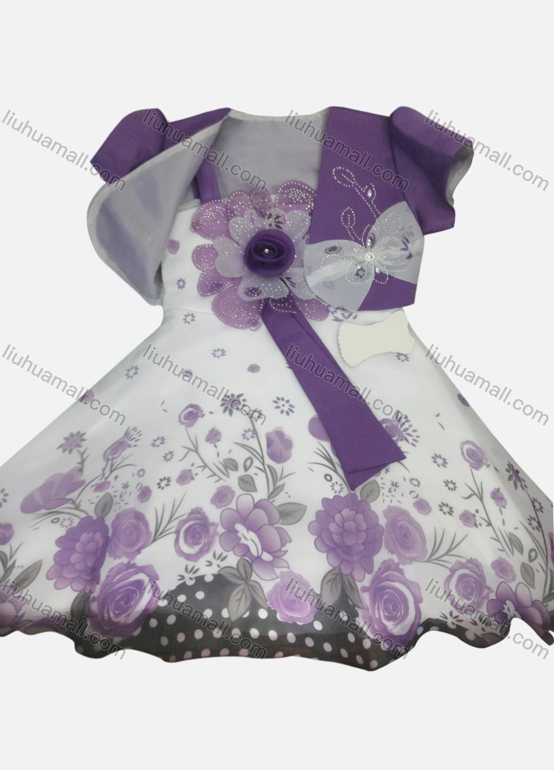 Wholesale Girls Lovely Floral Print Rhinestone Dress & Crop Cardigan Set
