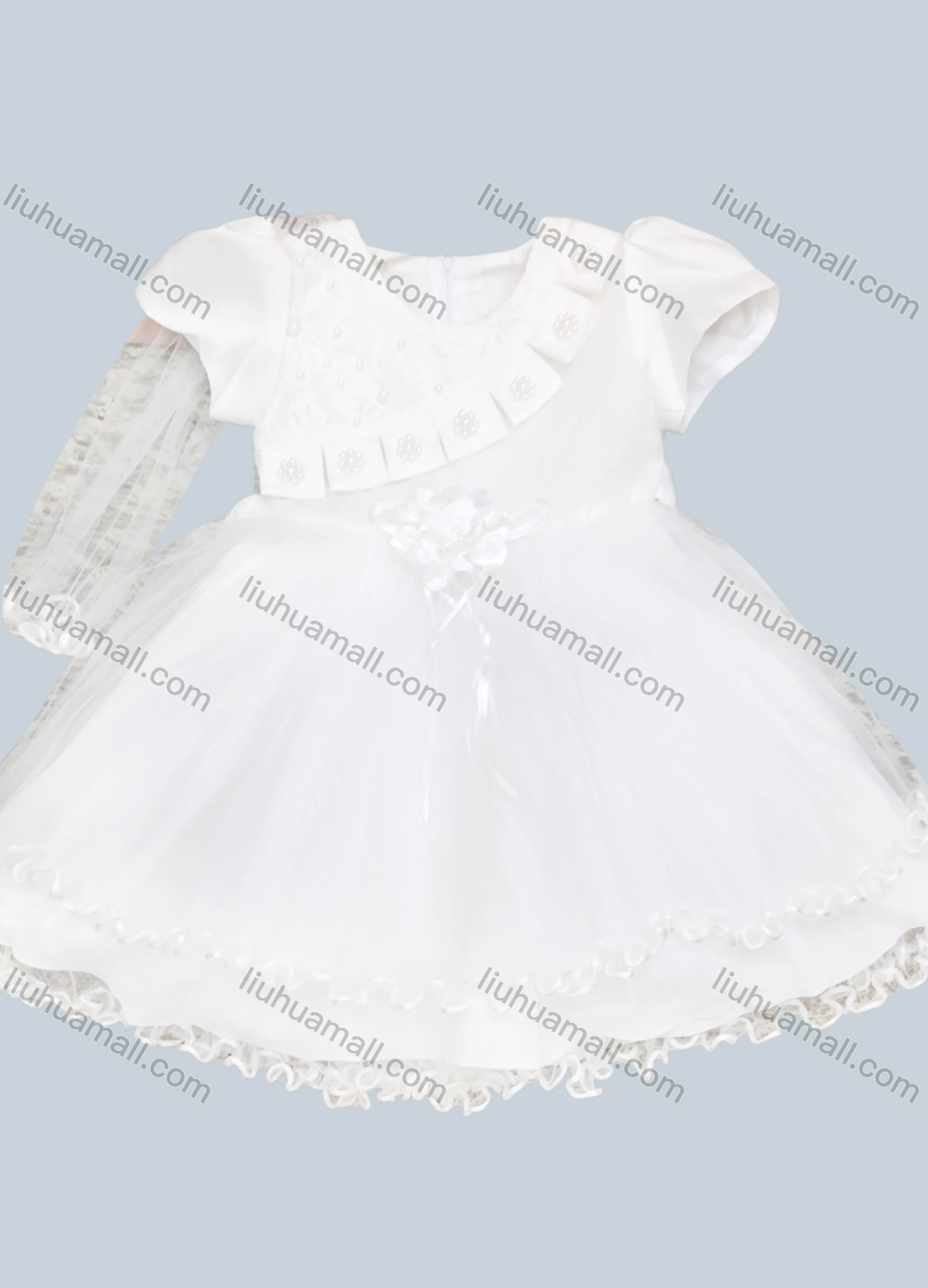 Wholesale Girls Lovely Short Sleeve Beaded Flower Dress