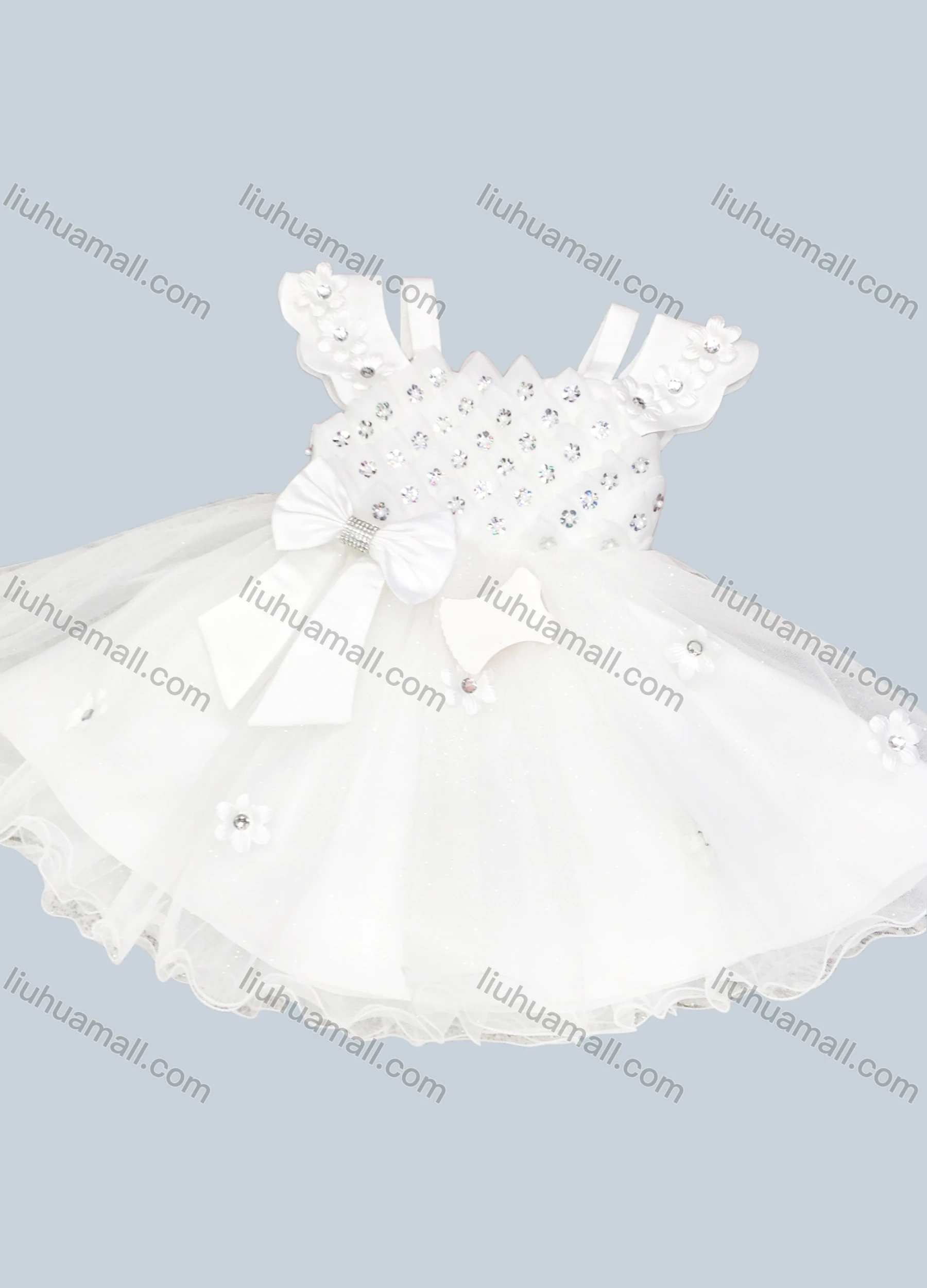 Wholesale Girls Lovely Short Sleeve Plain Sequin Appliques Bow-knot Flower Dress