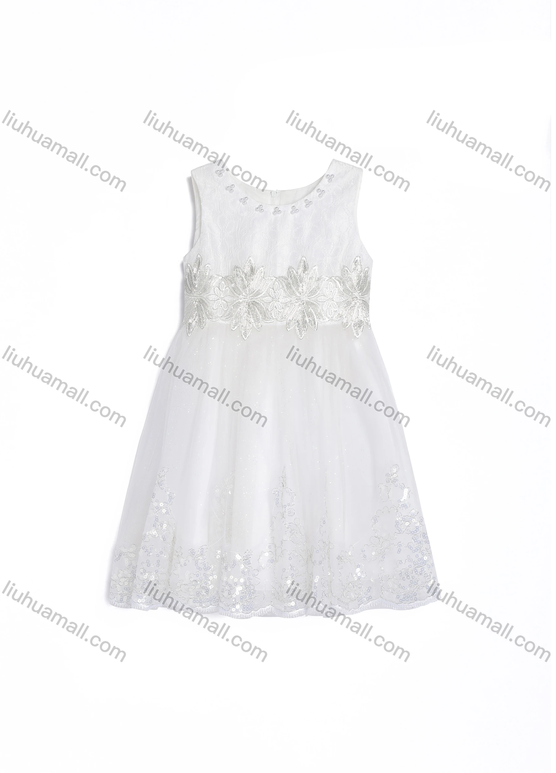 Wholesale Girls Sleeveless Zip Back Embroidery Beads Sequin Lace Flower Girl Dress
