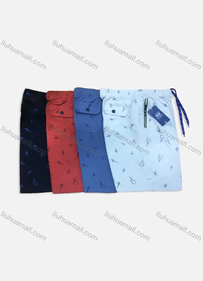 Wholesale Men's Allover Print Drawstring Zipper Flap Pockets Casual Shorts 570#