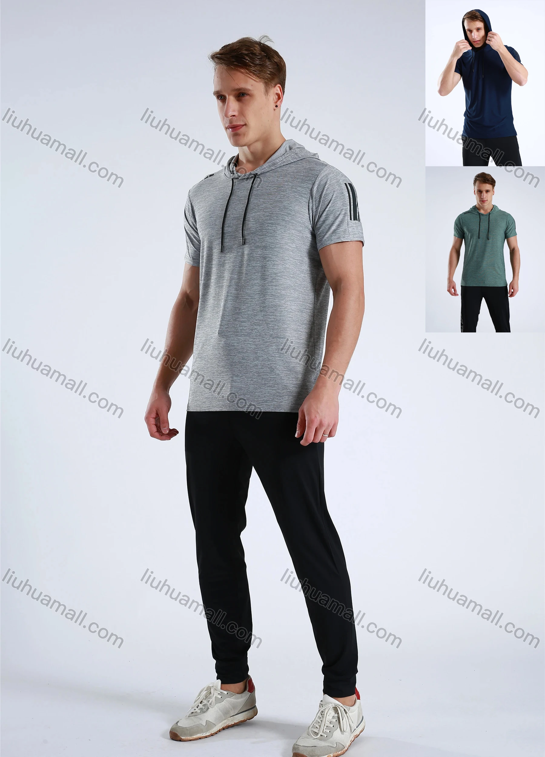 Wholesale Men's Athletic Workout Breathable Quick Dry Fitness Short Sleeve Hooded T-shirt M001#