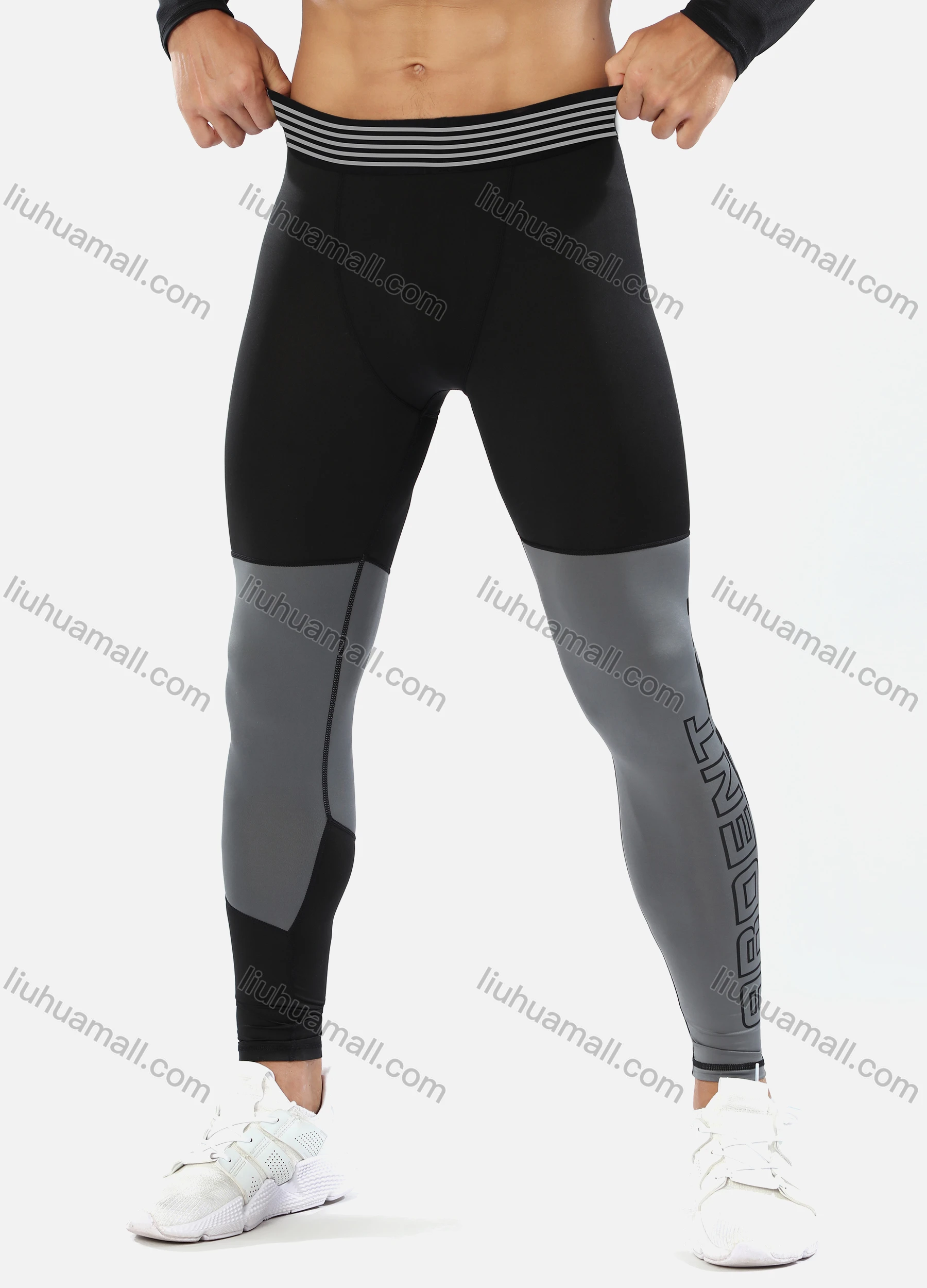 Wholesale Men's Athletic Workout Elastic Waist Colorblock Letter Print Ankle Length Gym Running Leggings N207#