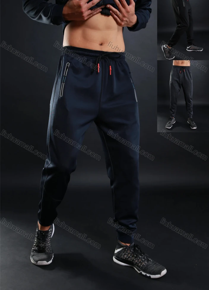 Wholesale Men's Athletic Workout Elastic Waist Drawstring Zipper Pockets Ankle Length Gym Running Joggers L10818#