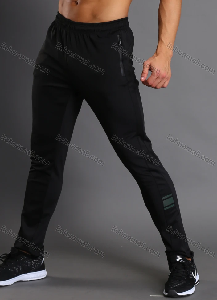 Wholesale Men's Athletic Workout Elastic Waist Reflective Stripes Zipper Pockets Ankle Length Gym Running Joggers N204#