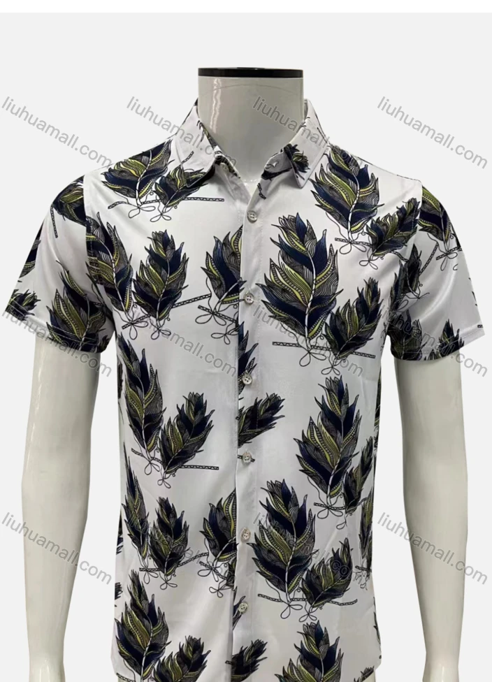 Wholesale Men's Casual Allover Leaf Print Button Down Collared Short Sleeve Shirt