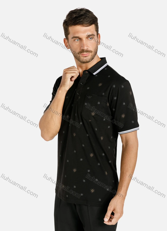 Wholesale Men's Casual Allover Print Striped Trim Patch Pocket Short Sleeve Polo Shirt