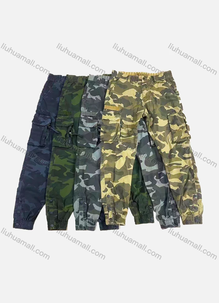 Wholesale Men's Casual Camouflage Multiple Pockets Button Decor Cargo Pants AK7350#