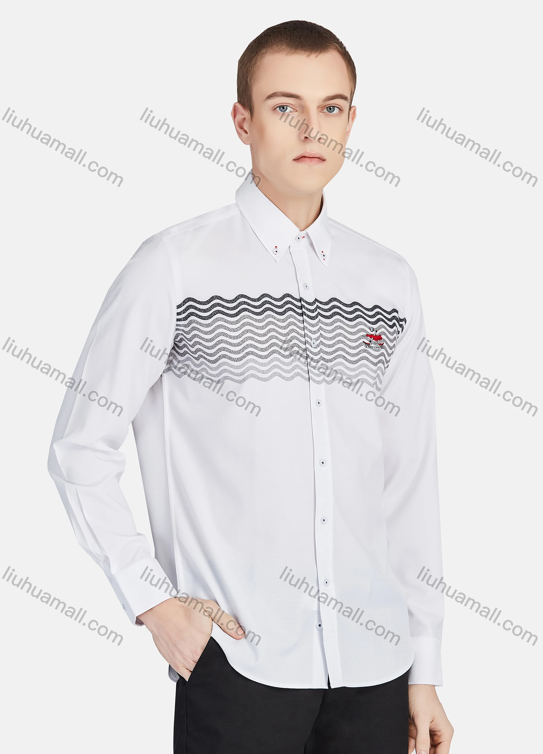 Wholesale Men's Casual Collared Long Sleeve Button Down Wave Print Shirt P001-2#