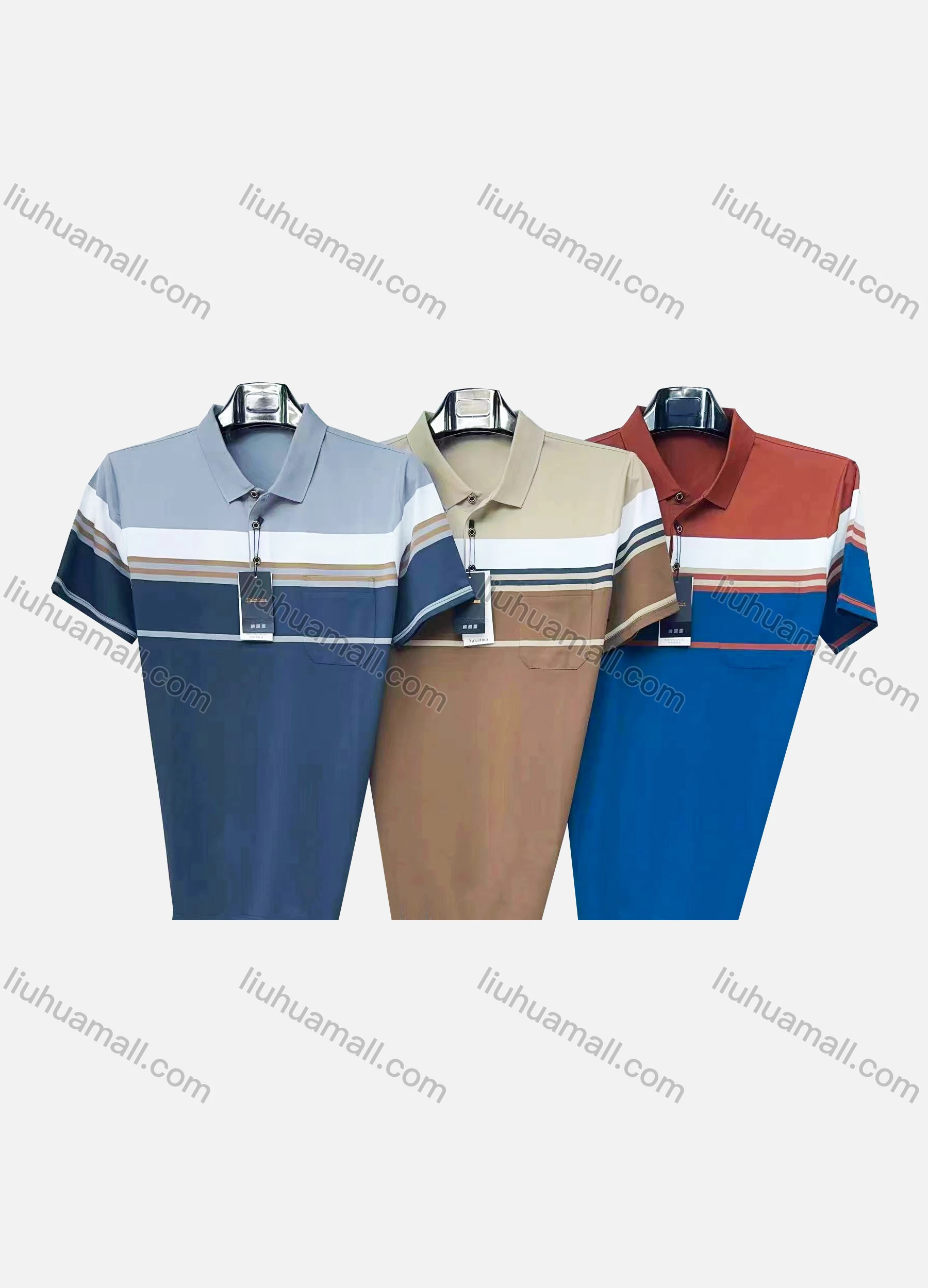 Wholesale Men's Casual Colorblock Striped Patch Pocket Short Sleeve Polo Shirt 892#