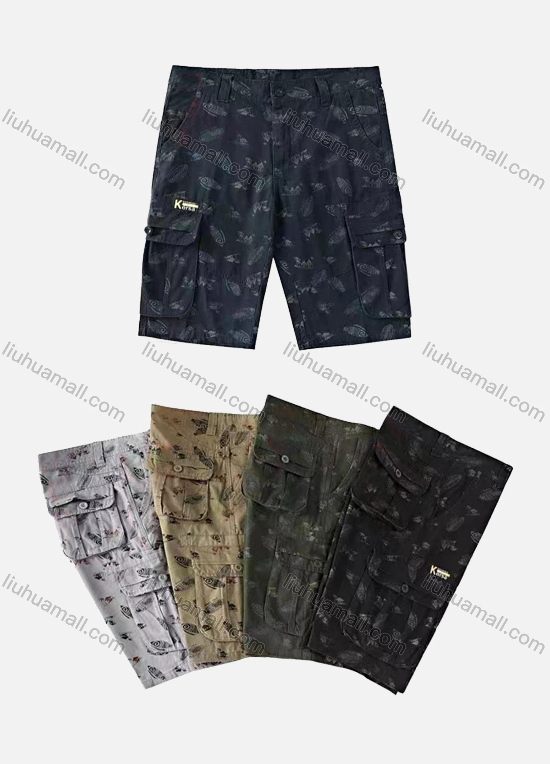 Wholesale Men's Casual Flap Pockets Allover Print Cargo Shorts