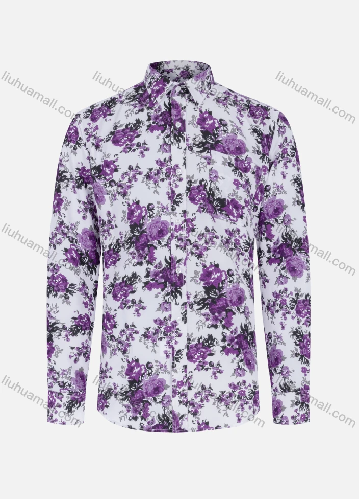 Wholesale Men's Casual Floral Print Long Sleeve Shirt