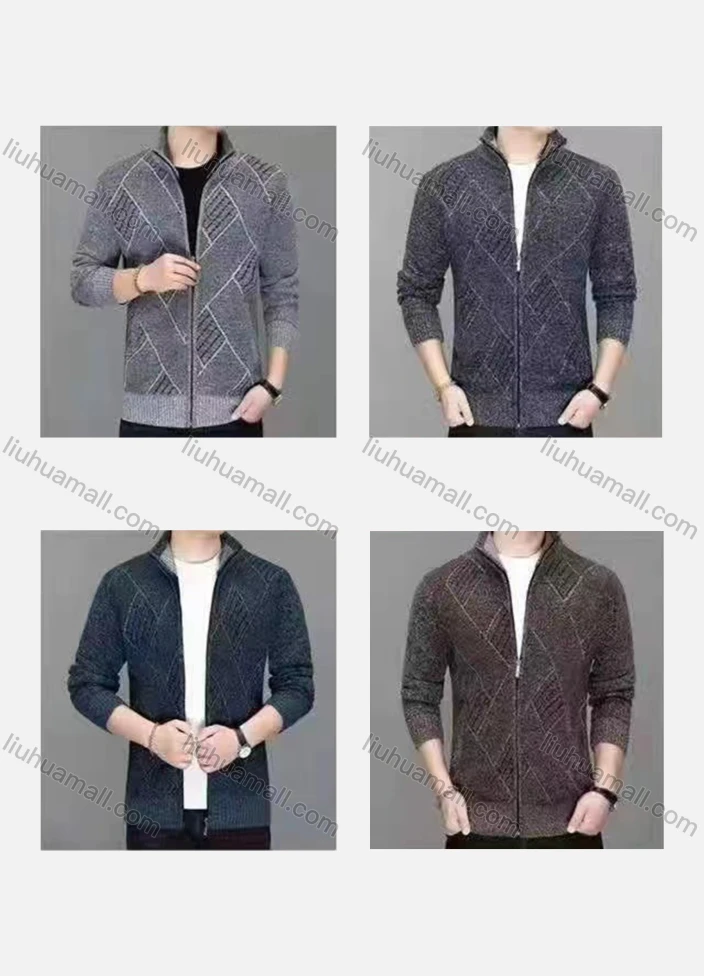 Wholesale Men's Casual Long Sleeve Stand Collar Zipper Geometric Pattern Jackets With Thermal Lined