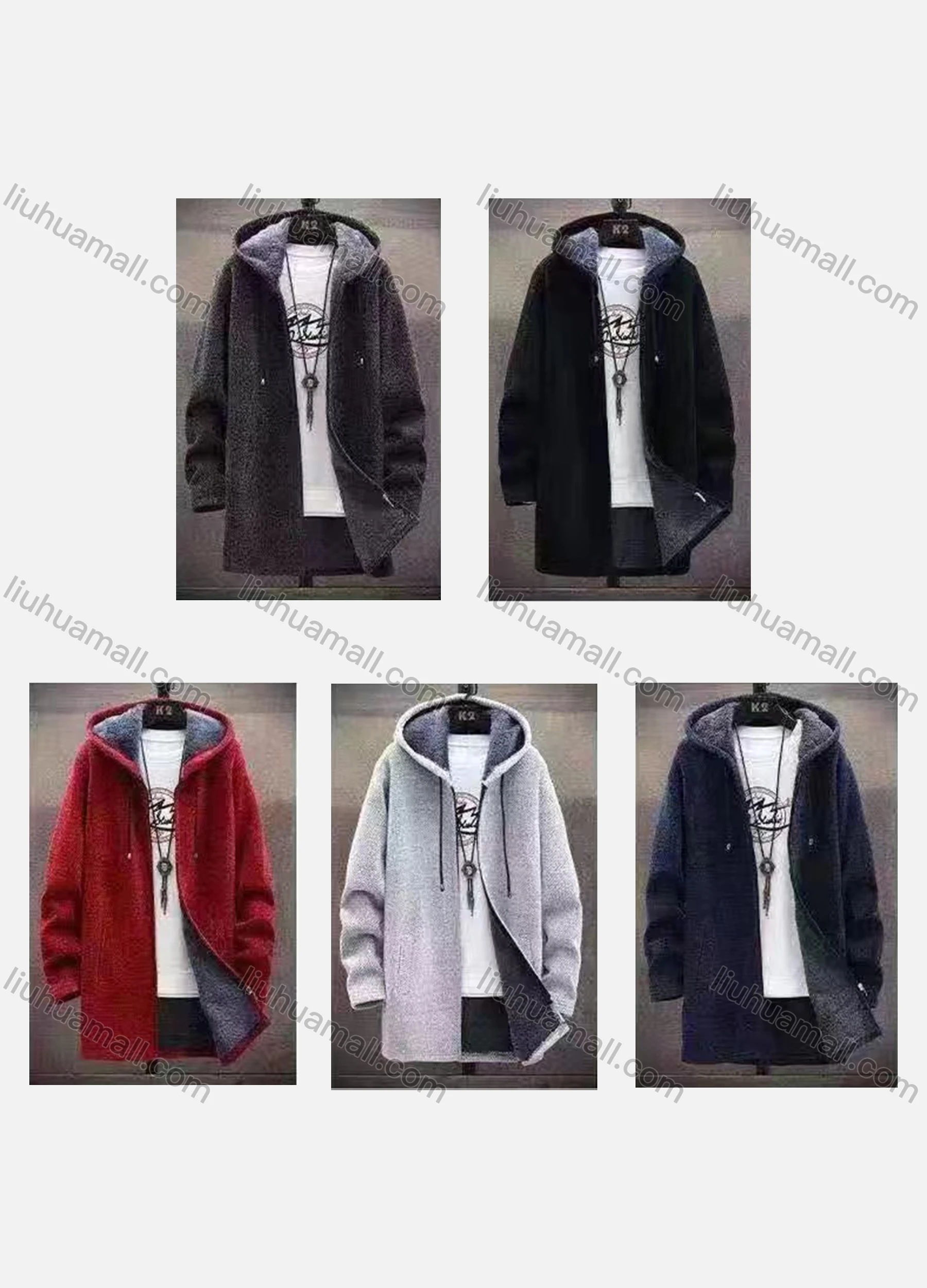Wholesale Men's Casual Long Sleeve Zipper Plush Hooded Long Jackets With Thermal Lined