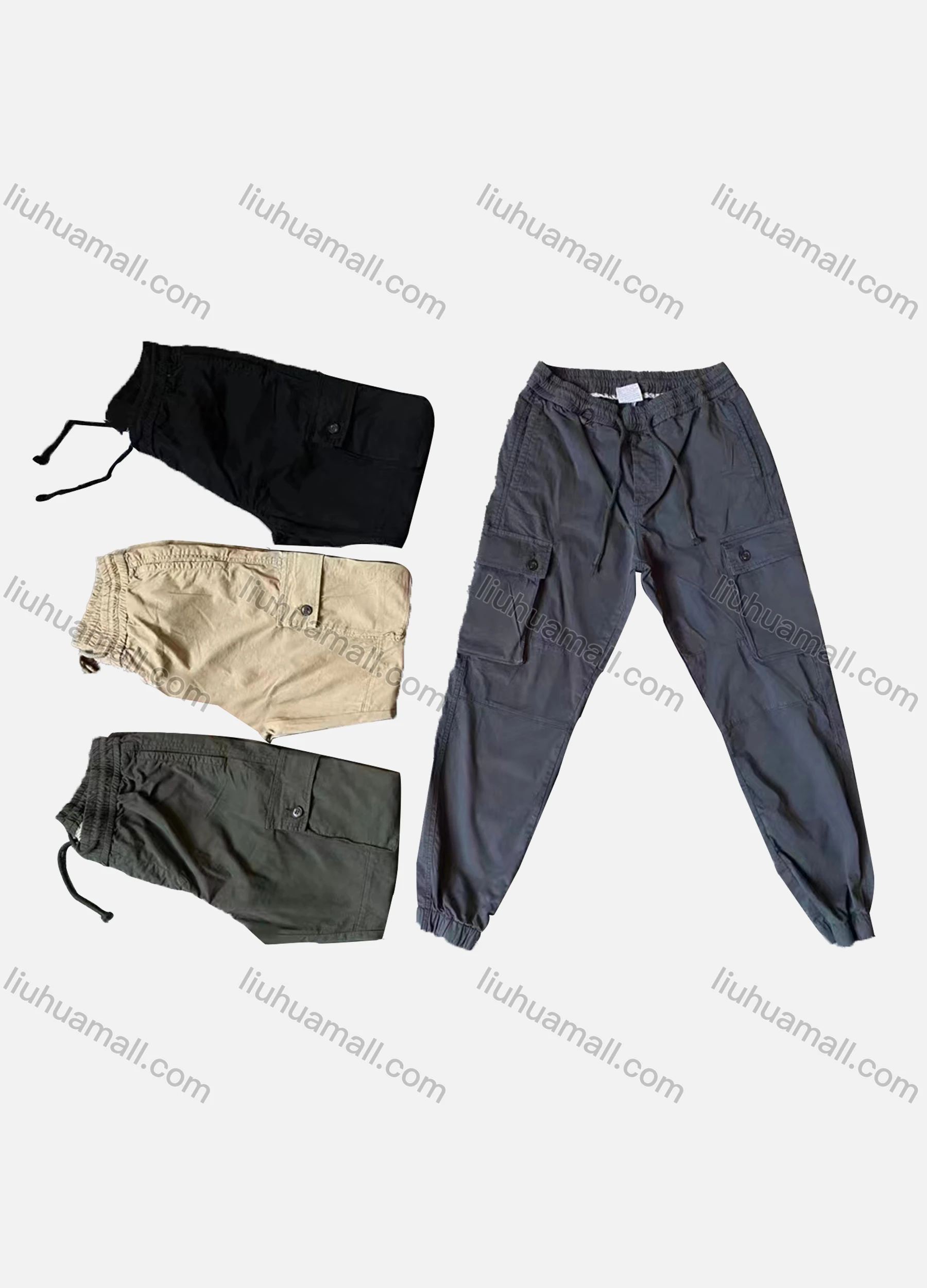 Wholesale Men's Casual Plain Flap Pockets Drawstring Cargo Pants 609#
