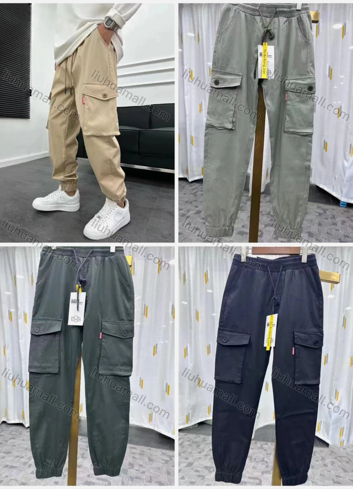 Wholesale Men's Casual Plain Flap Pockets Drawstring Elastic Waist Cargo Pants 6953#