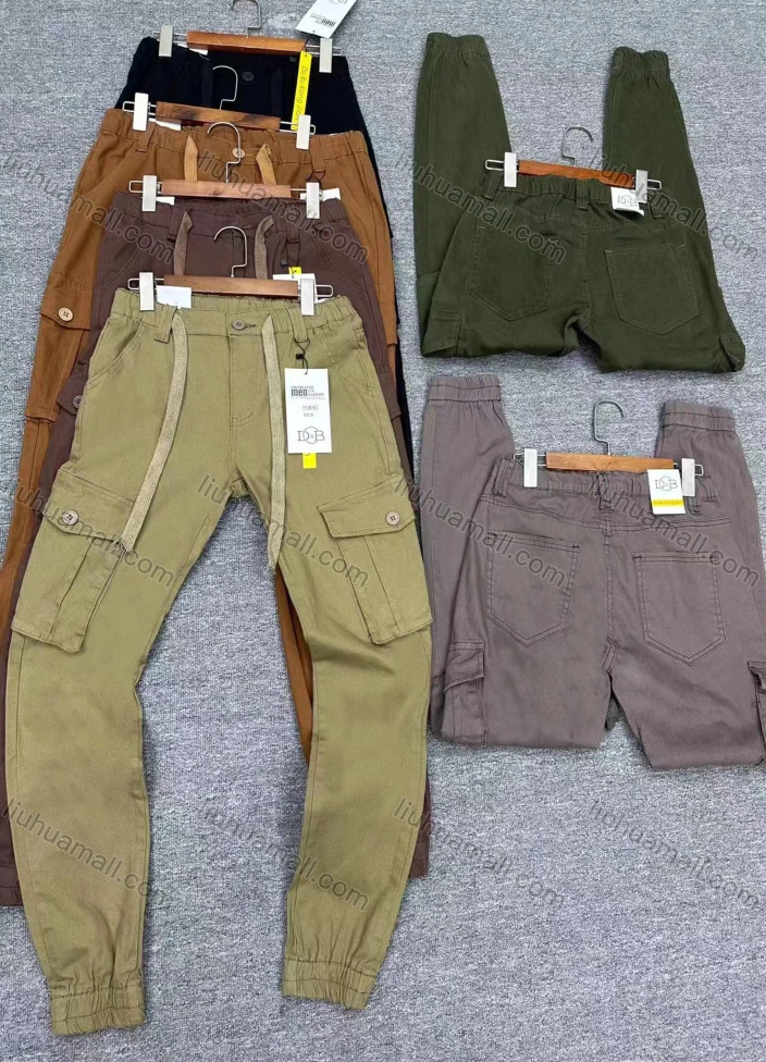 Wholesale Men's Casual Plain Flap Pockets Drawstring Elastic Waist Cargo Pants 8625#