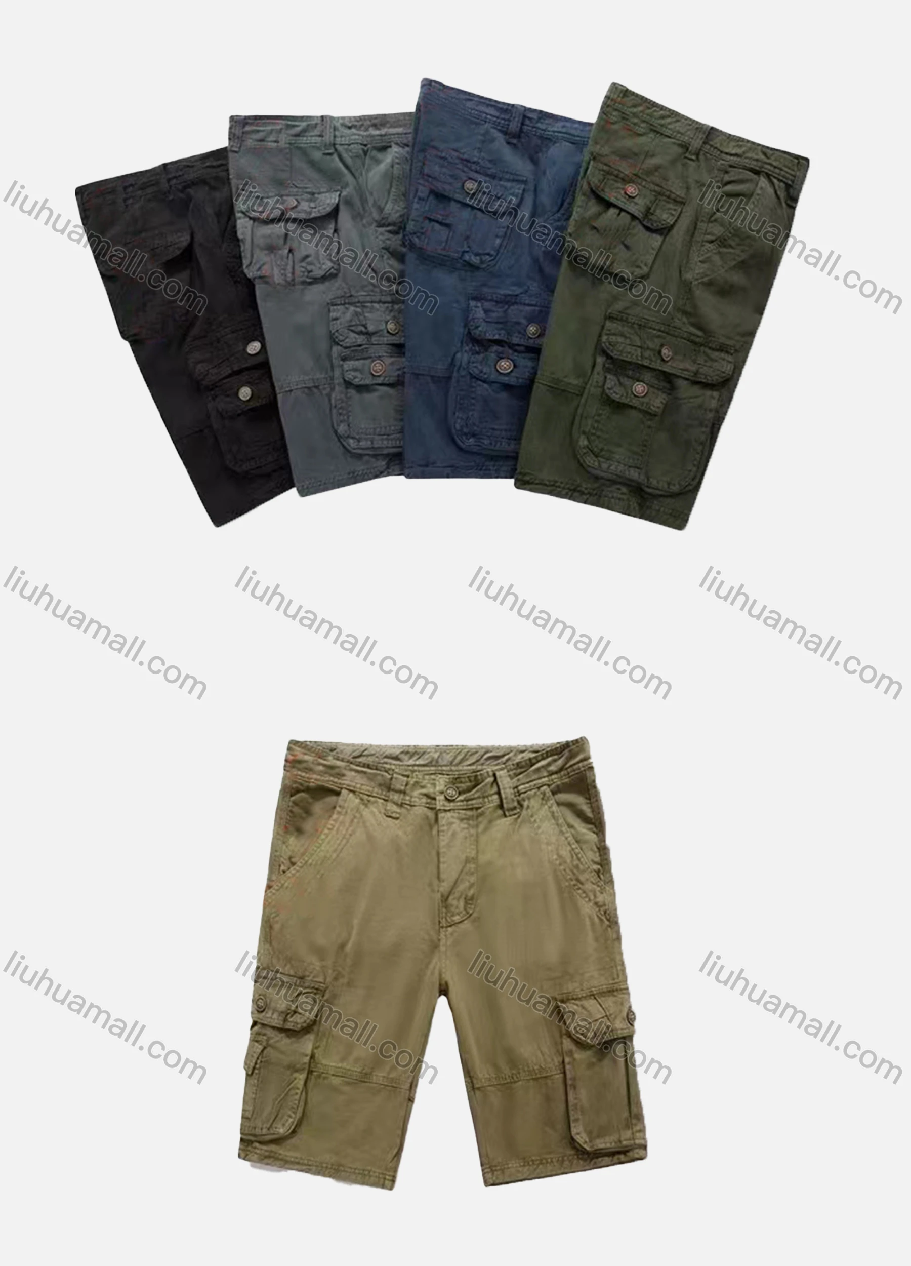 Wholesale Men's Casual Plain Multiple Flap Pockets Shorts 97052#