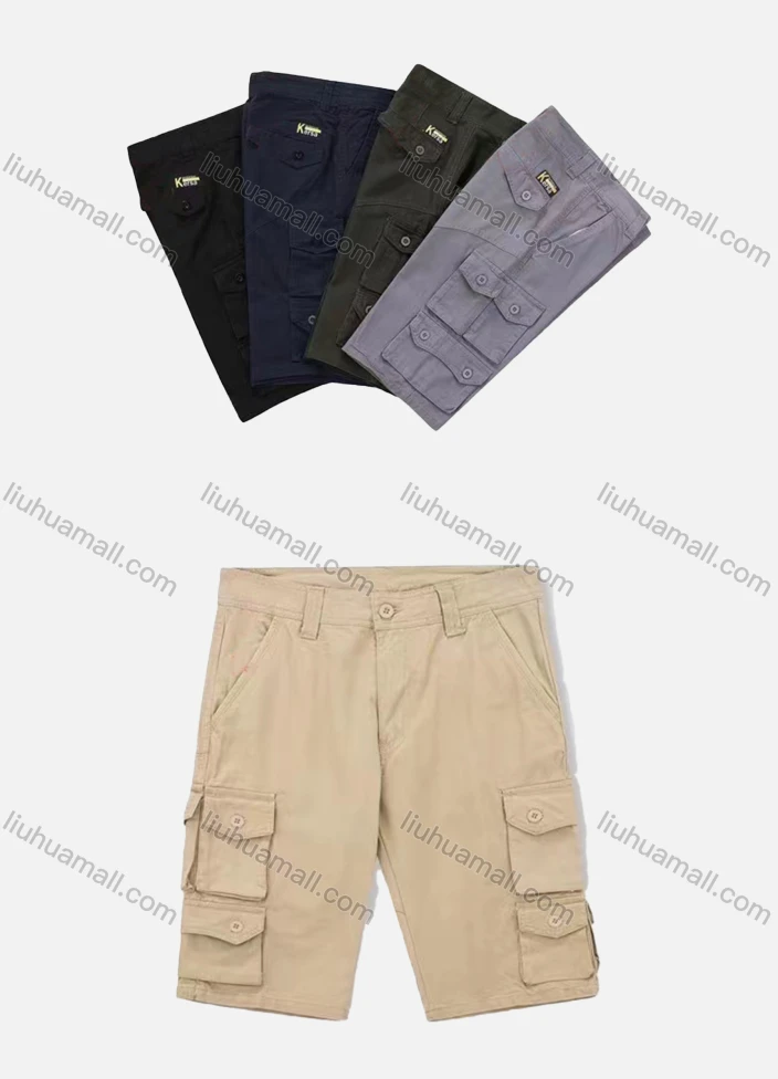 Wholesale Men's Casual Plain Multiple Flap Pockets Shorts 97953#
