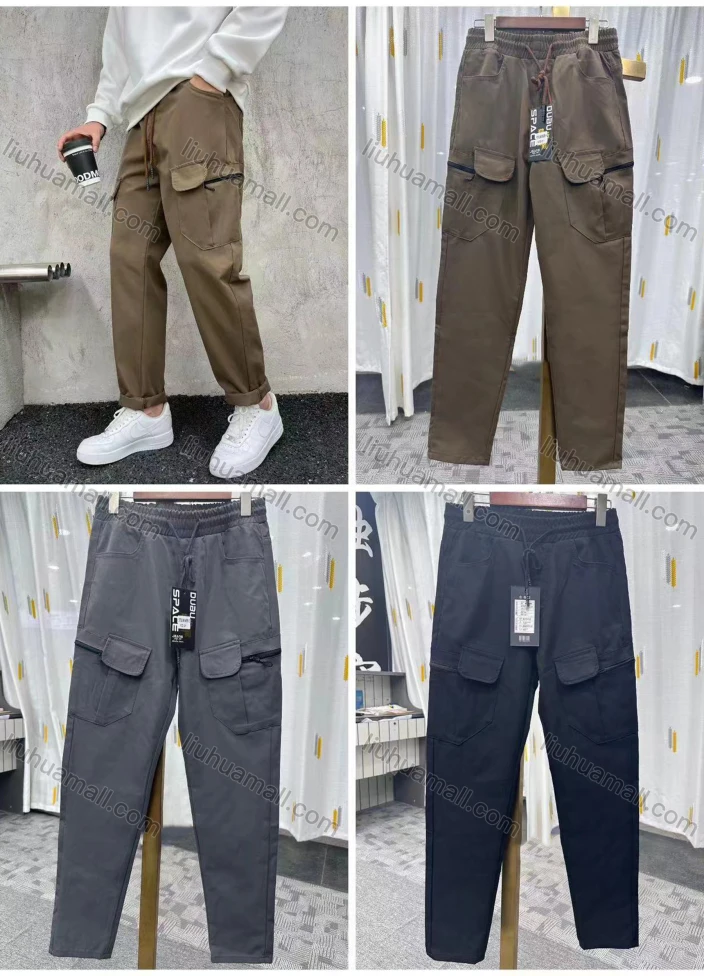 Wholesale Men's Casual Plain Multiple Pockets Drawstring Elastic Waist Cargo Pants 6939#