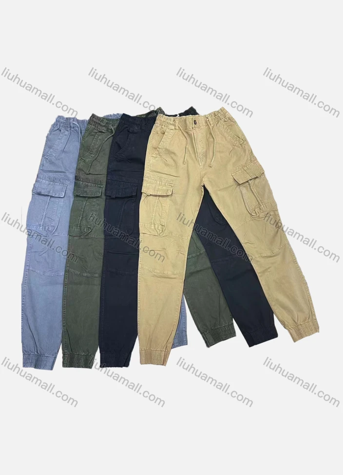 Wholesale Men's Casual Plain Multiple Pockets Drawstring Elastic Waist Cargo Pants 8097#