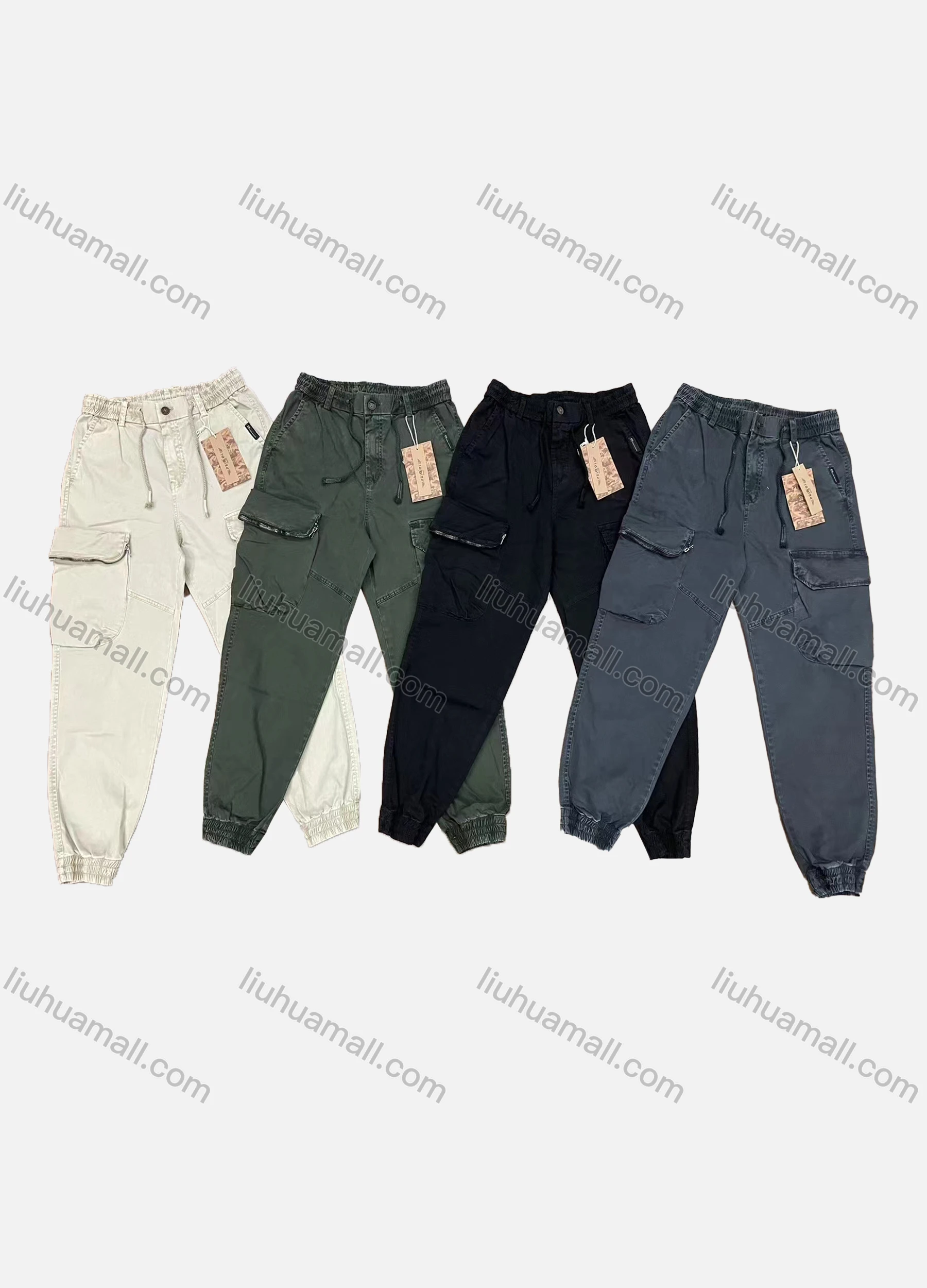 Wholesale Men's Casual Plain Multiple Pockets Drawstring Elastic Waist Cargo Pants 9323#