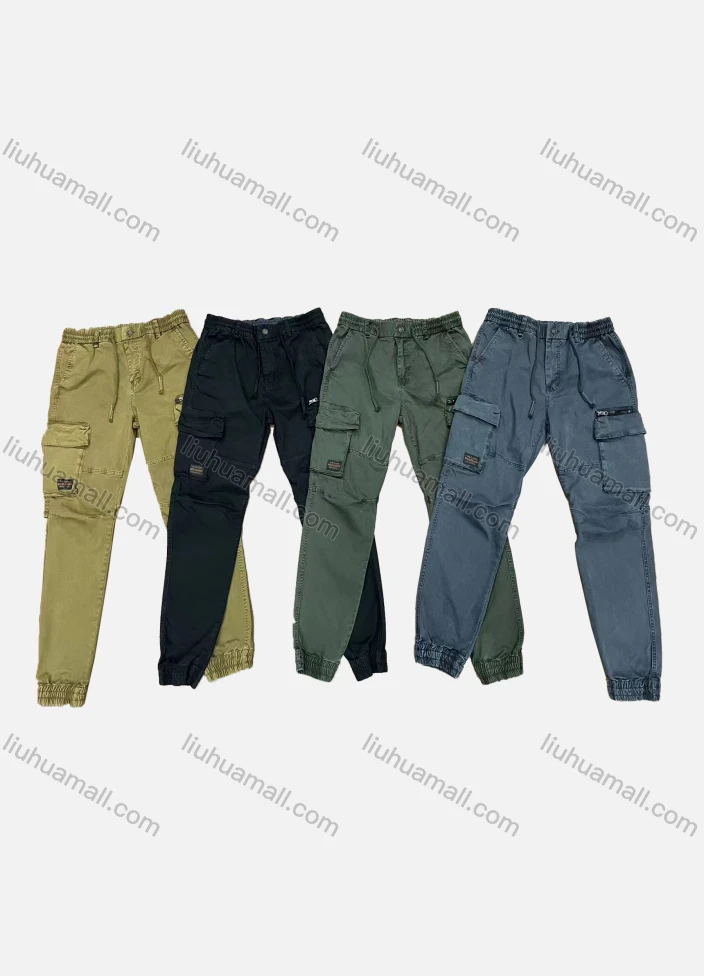 Wholesale Men's Casual Plain Multiple Pockets Drawstring Elastic Waist Cargo Pants 9366#