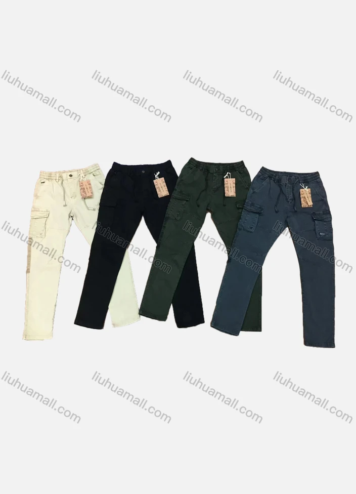 Wholesale Men's Casual Plain Multiple Pockets Elastic Waist Cargo Pants 9362#