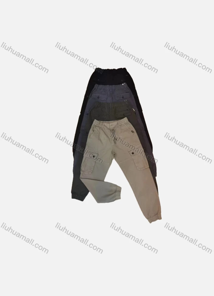 Wholesale Men's Casual Plain Multiple Pockets Elastic Waist Drawstring Cargo Pants 2202#