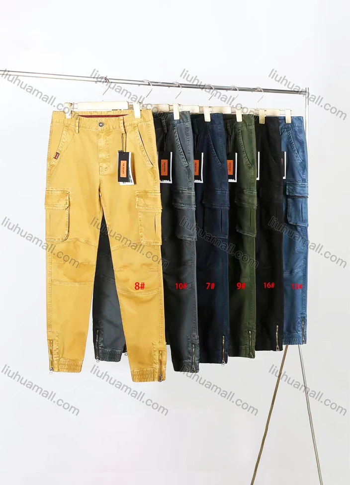 Wholesale Men's Casual Plain Multiple Pockets Zip Decor Cargo Pants 8915#