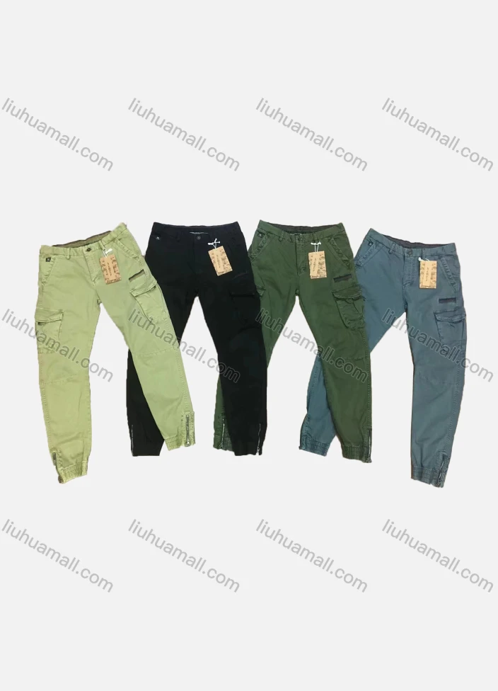 Wholesale Men's Casual Plain Multiple Pockets Zip Decor Cargo Pants 9391#