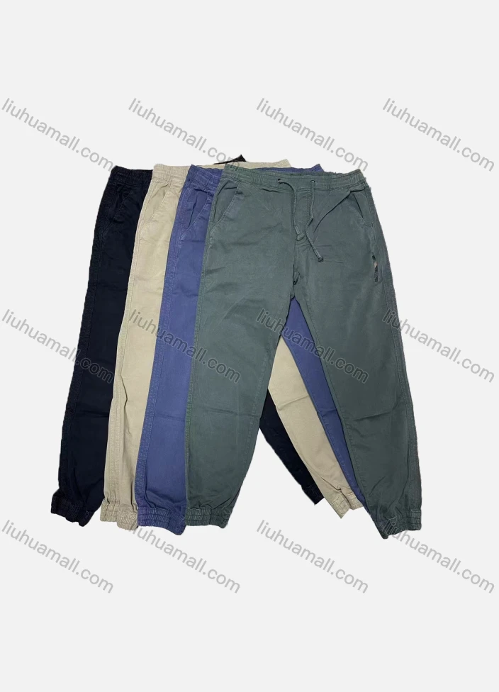 Wholesale Men's Casual Plain Patch Pocket Drawstring Elastic Waist Cargo Pants W9621#