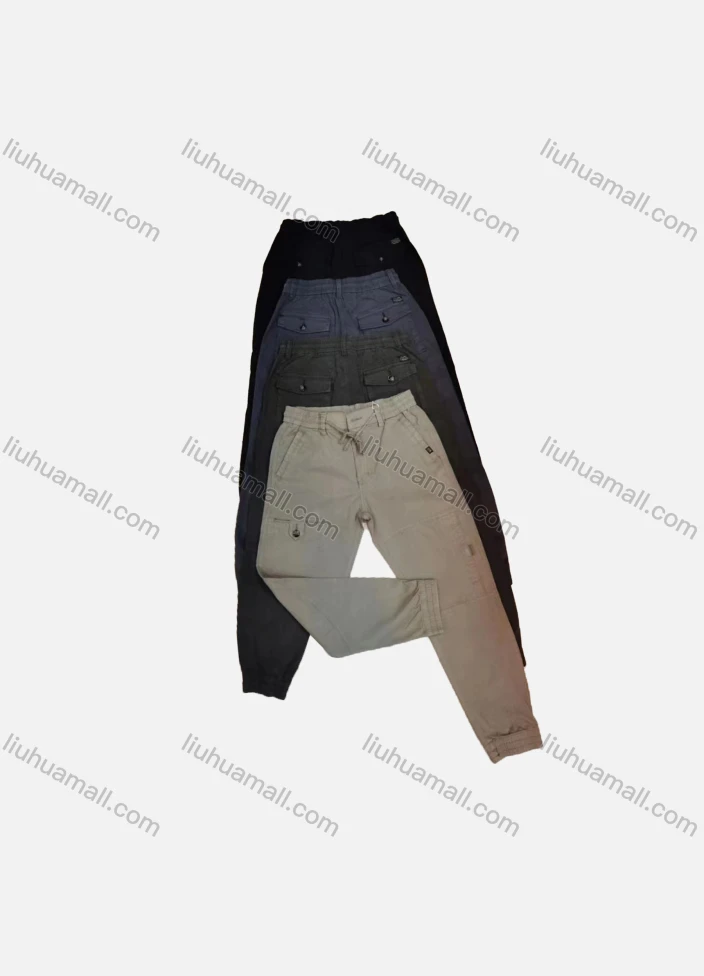 Wholesale Men's Casual Plain Patch Pocket Elastic Waist Drawstring Cargo Pants 2206#