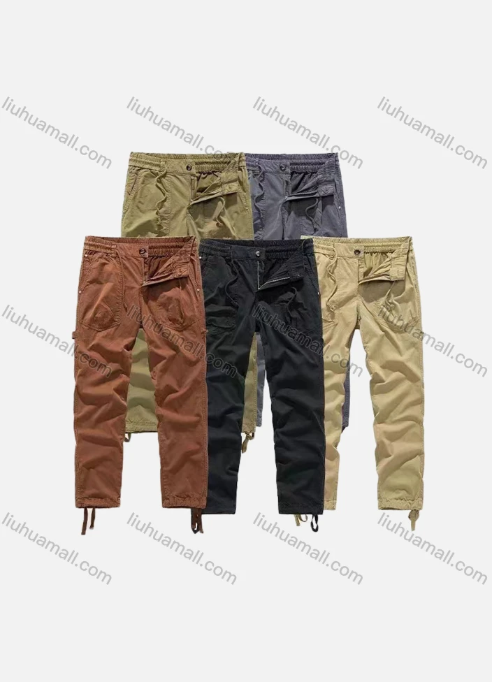 Wholesale Men's Casual Plain Patch Pocket Elastic Waist Drawstring Cargo Pants 683#