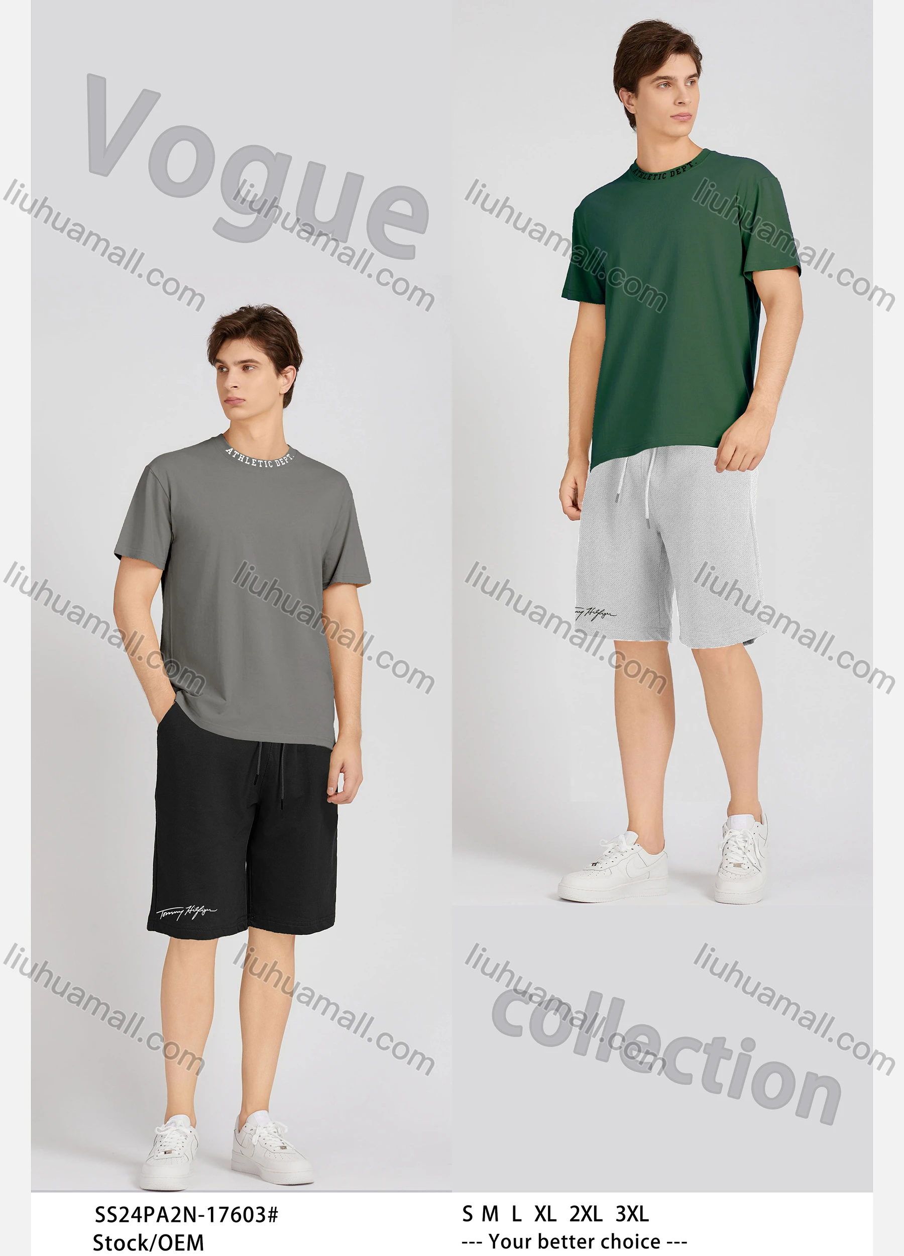 Wholesale Men's Casual Plain Round Neck Short Sleeve T-Shirts & Shorts 2 Piece Set 17603#