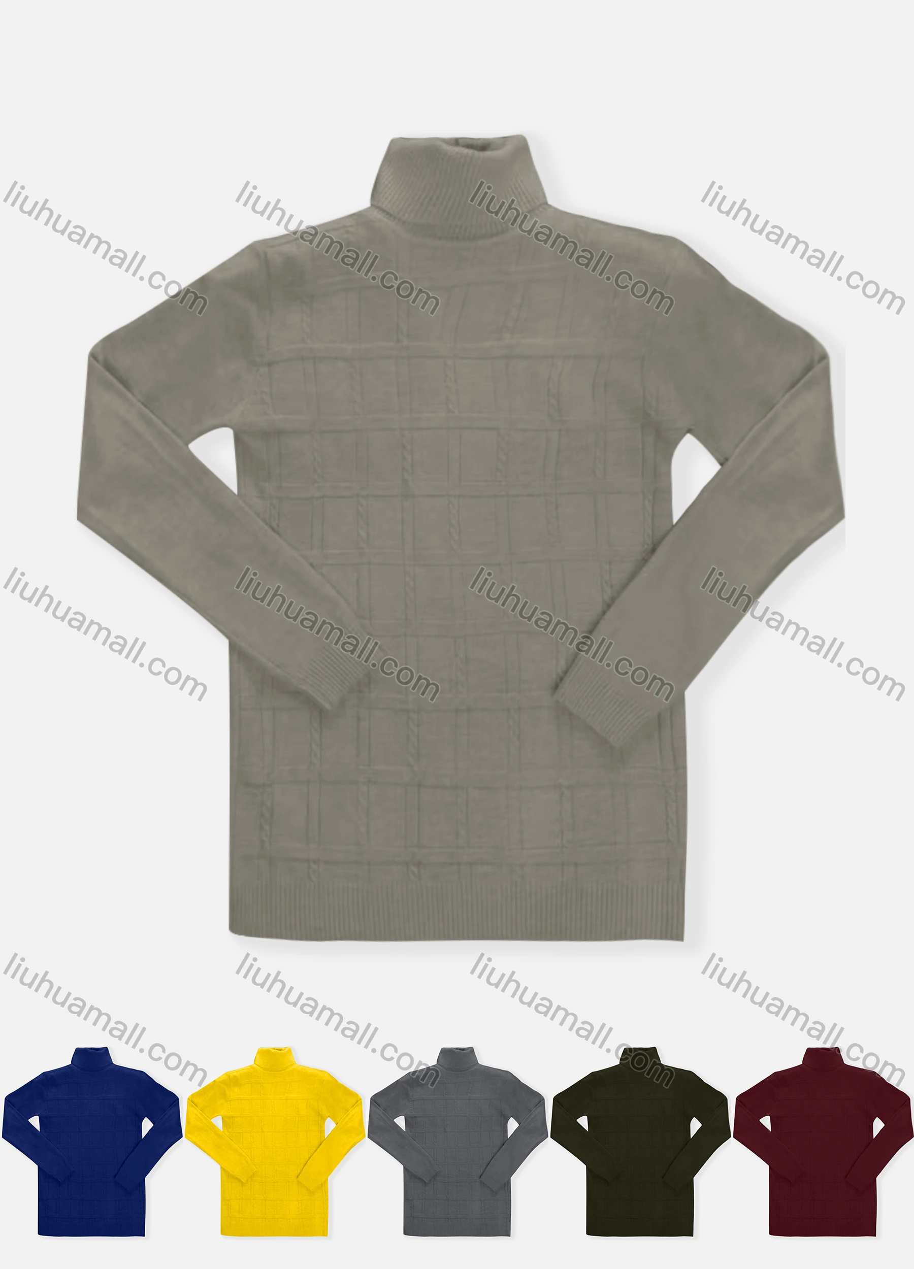 Wholesale Men's Casual Plain Turtleneck Long Sleeve Sweater - Liuhuamall