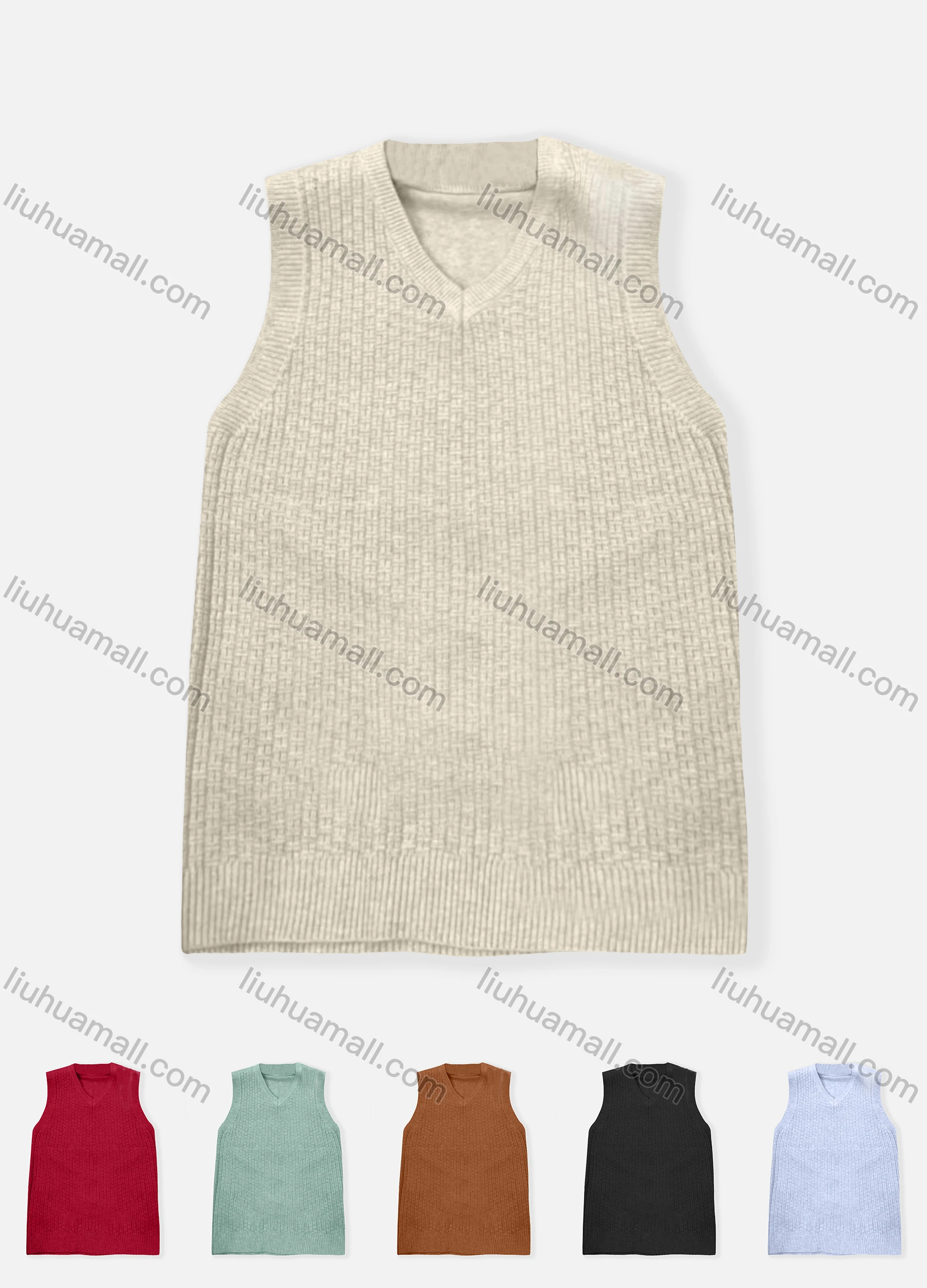 Wholesale Men's Casual Plain V Neck Rib Knit Sweater Vest