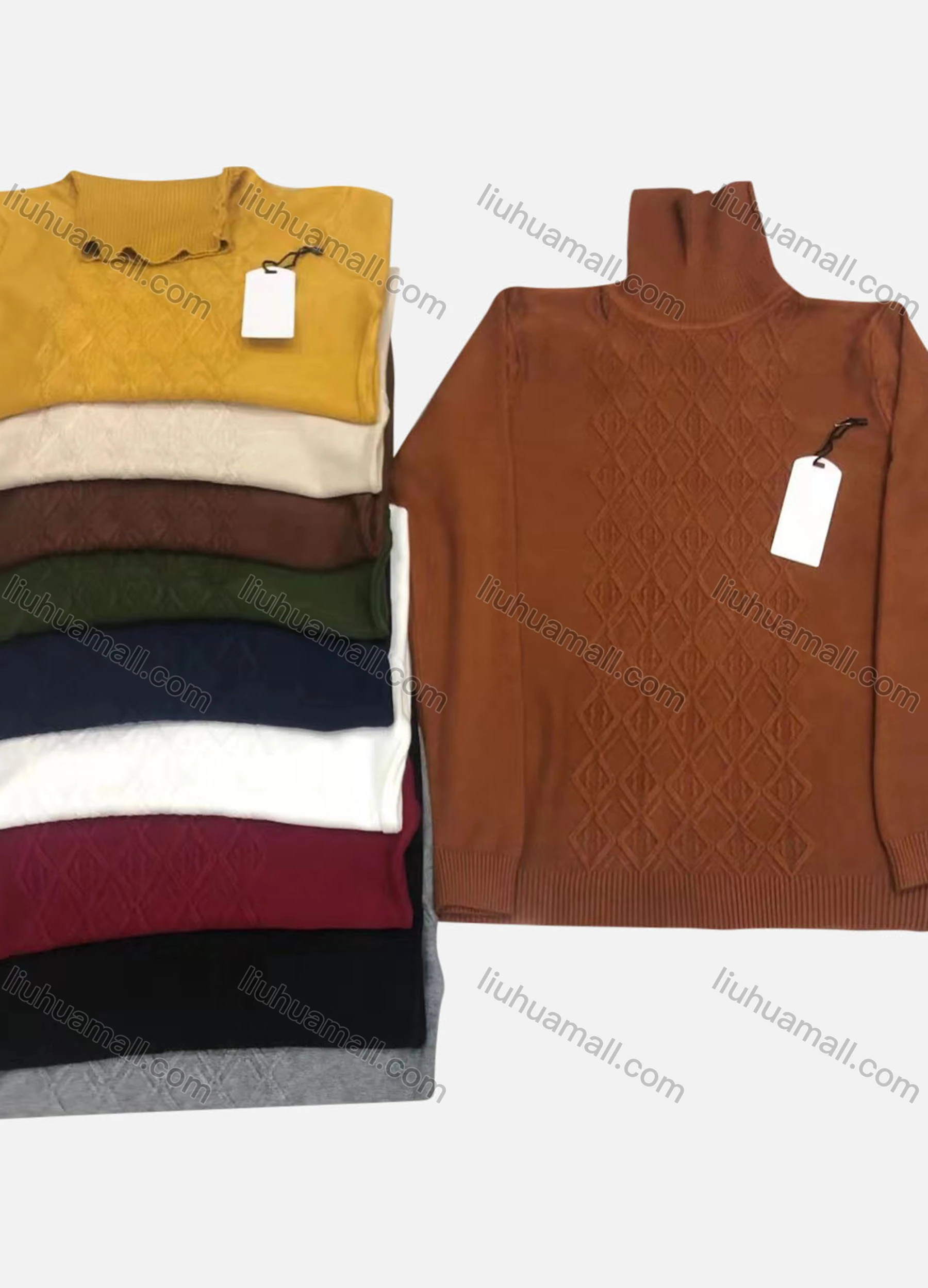Wholesale Men's Casual Plain Vintage Print Turtleneck Long Sleeve Sweater - Liuhuamall